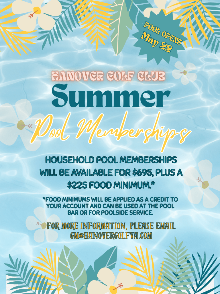 Hanover Golf Club provides the most idyllic setting for a private club pool, open from Memorial Day to Labor Day. In addition to an Olympic size pool, we also provide our members with a spacious patio and landscaped lawn area. Whether you’re socializing, sunning, or swimming, there’s fun for all ages at Hanover Golf Club.